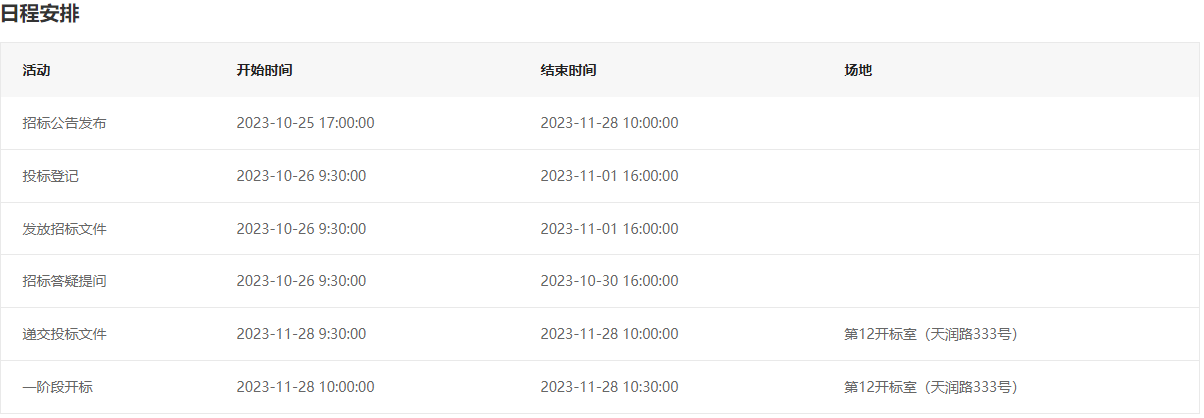 开标时间:2023年11月28日 10时0分 - 2023年11月28日 10时30分